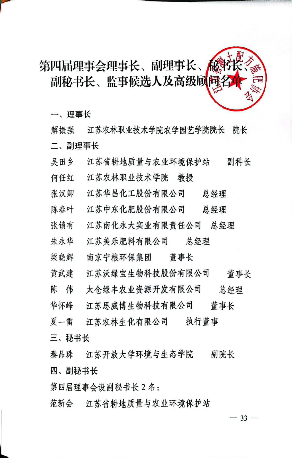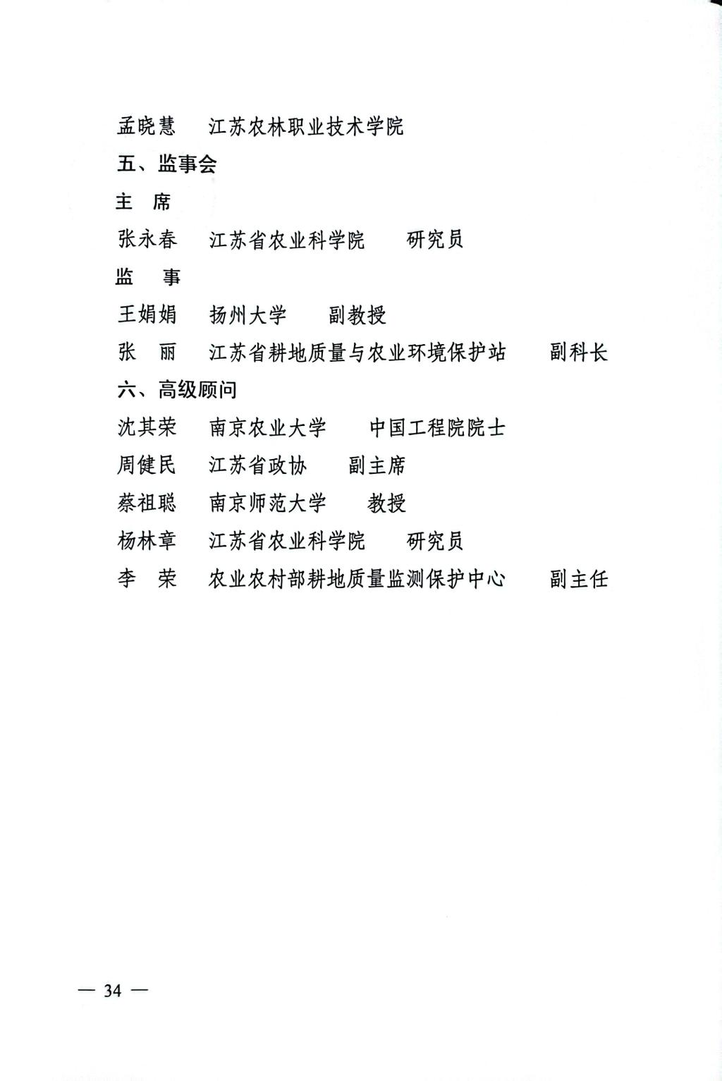 江苏省测土配方施肥协会组织机构构成与成员名单